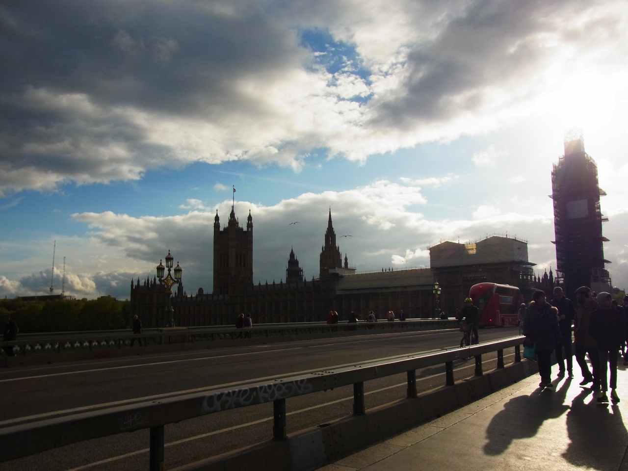 ロンドンの有名な観光スポットである国会議事堂ですが、その一部であるビッグベンとともに、工事が行われており、一部は覆いが掛けられていて、見えませんでした。ウエストミンスター駅が最寄りですが、ウォータルー駅から歩いて、橋を渡りながら眺めました。