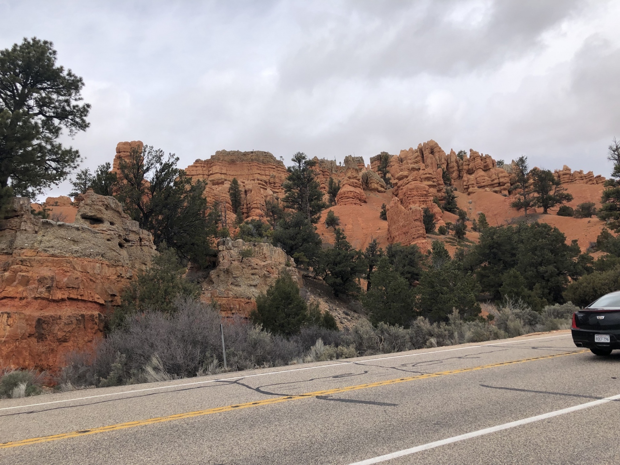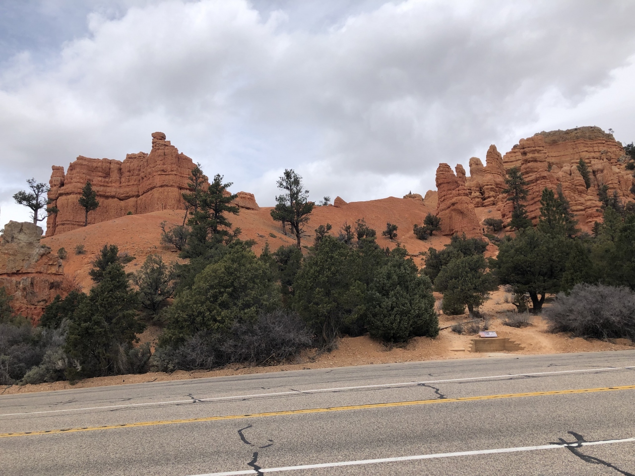 ブライスキャニオン国立公園に行くため、ハイウエイ89号線から12号線に入っていくと出てきます。その名のとおり赤い岩山の渓谷ですがまるで人間の手によって作られたような姿は太古の宮殿のようにも見え、何かの法則のように規則正しく聳え立つ姿にはこれが自然の造形美かと惚れ惚れします。
