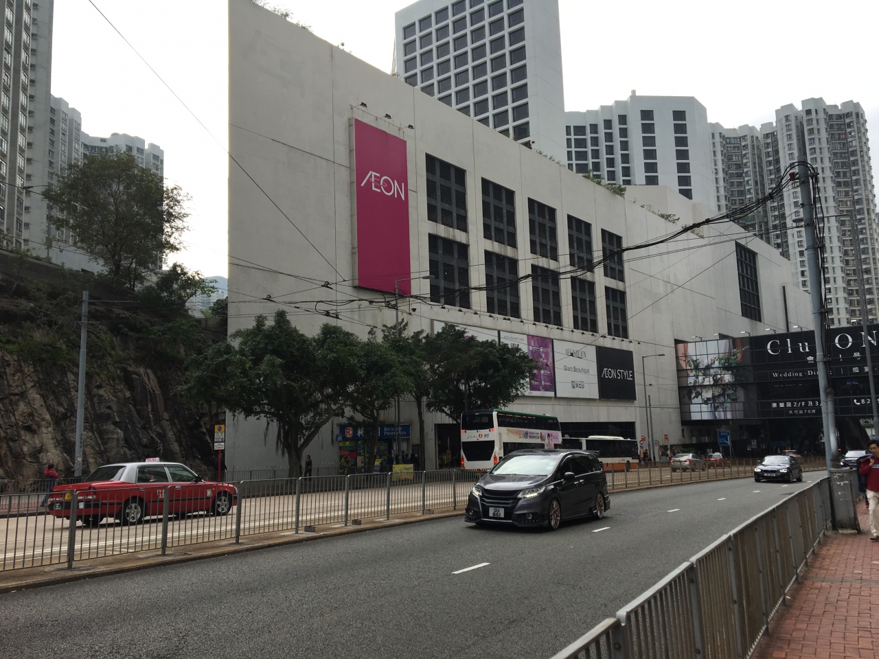 太古駅の近くにイオンがありました。通りを挟んだ向かいにあるコーンヒルプラザというショッピングモールとも連絡橋で繋がっていて便利でした。