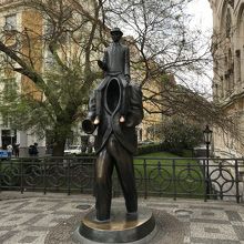 スペイン・シナゴークの前に設置されています。一見して、目を引かれる少し変わった銅像でした。カフカが肩車されている像ですが、肩車をしている人の方は、服があるだけで身体は無いという不思議な像です。メッセージ性があるのだとは思いますが、カフカについて詳しくない私には、そこまではわかりませんでした。カフカの足の部分だけ、皆が触るので、色が変わっていました。