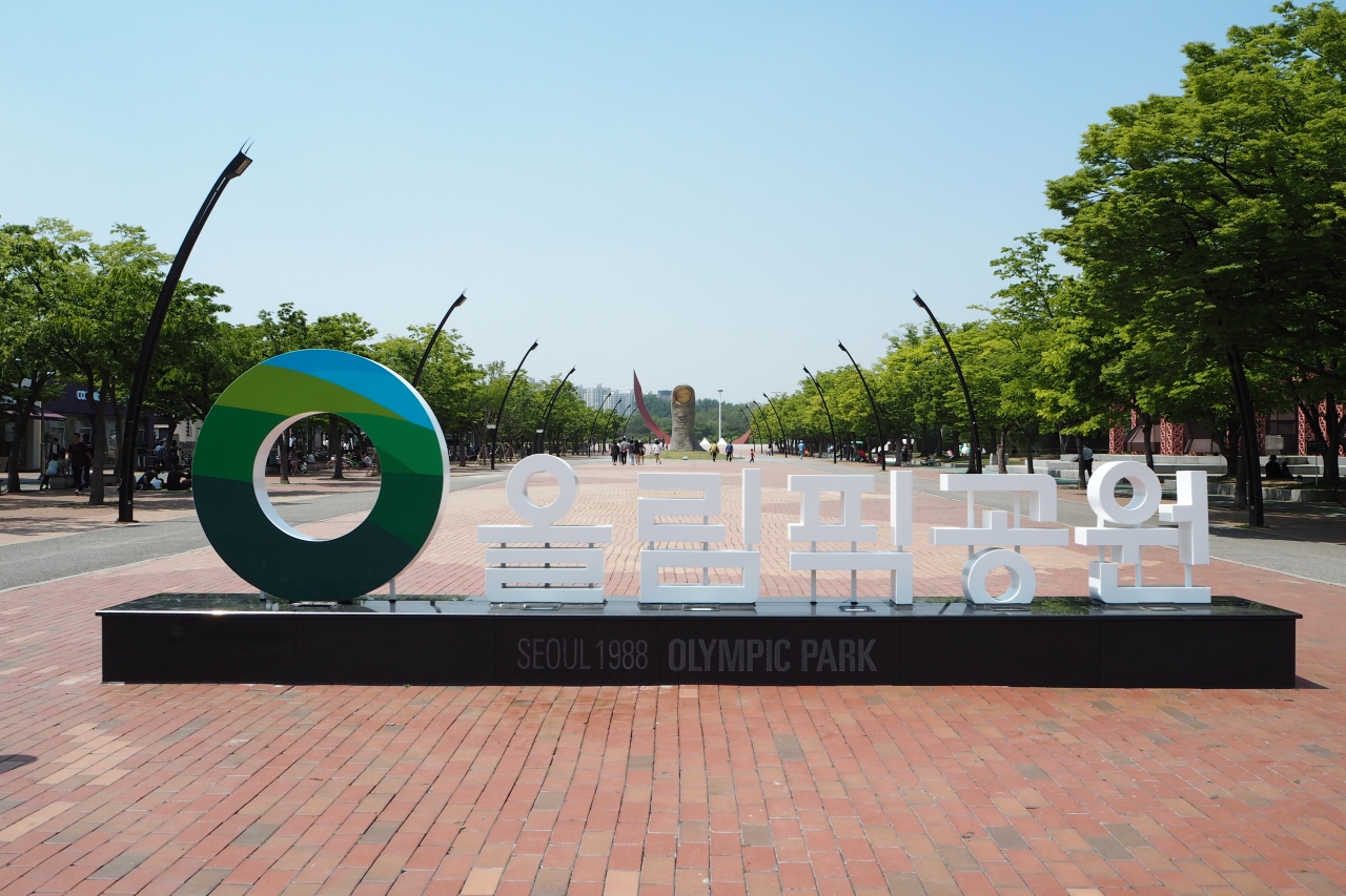 オリンピック公園駅という名の通り、地下鉄の出入り口を出るとすぐ公園の入口です。