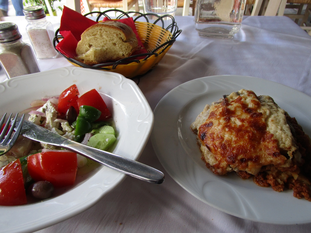 ぷらか地区を散策中、少し早いランチで訪問しました。店員さんはタコのグリルを進めてくれましたがムサカを食べたかったので、ギリシャサラダなどがセットになっているメニューを注文しました。味は普通においしくデザートなども付いていてリーズナブルでよかったです。