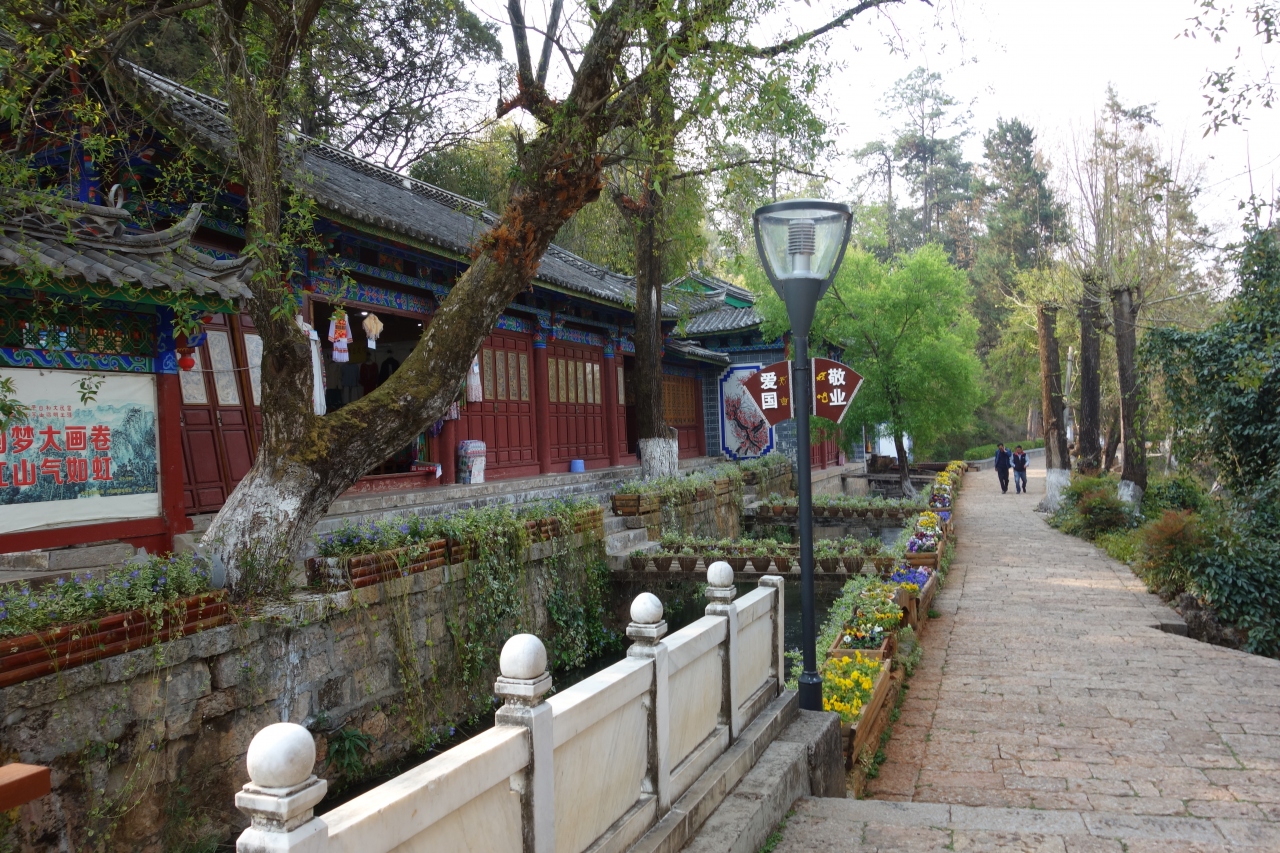南門から入って東巴博物館までゆっくり歩きましたが、広場ではちょうどナシ族の人たちがダンスをしているのを見ることができました。また水を汲んでいる人がいたり、ベンチでおしゃべりしている人がいたり市民が思い思いに楽しんでいる感じの広くてのんびりした公園でした。
