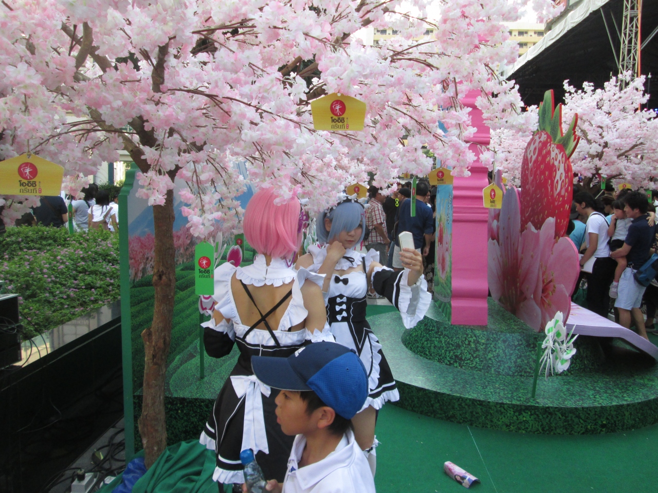 2月の週末、ゼン前の広場でコスプレ大会のイベントを開催していました。オリジナルのキャラクターだけでなく、親日であるタイ人たちは日本のキャラクターに変装していました。プロのカメラマンだけでなくアマチュアや観光客に対しても、ポーズをしてくれました。気候だけでなく、暑くて本格的なイベントでした。