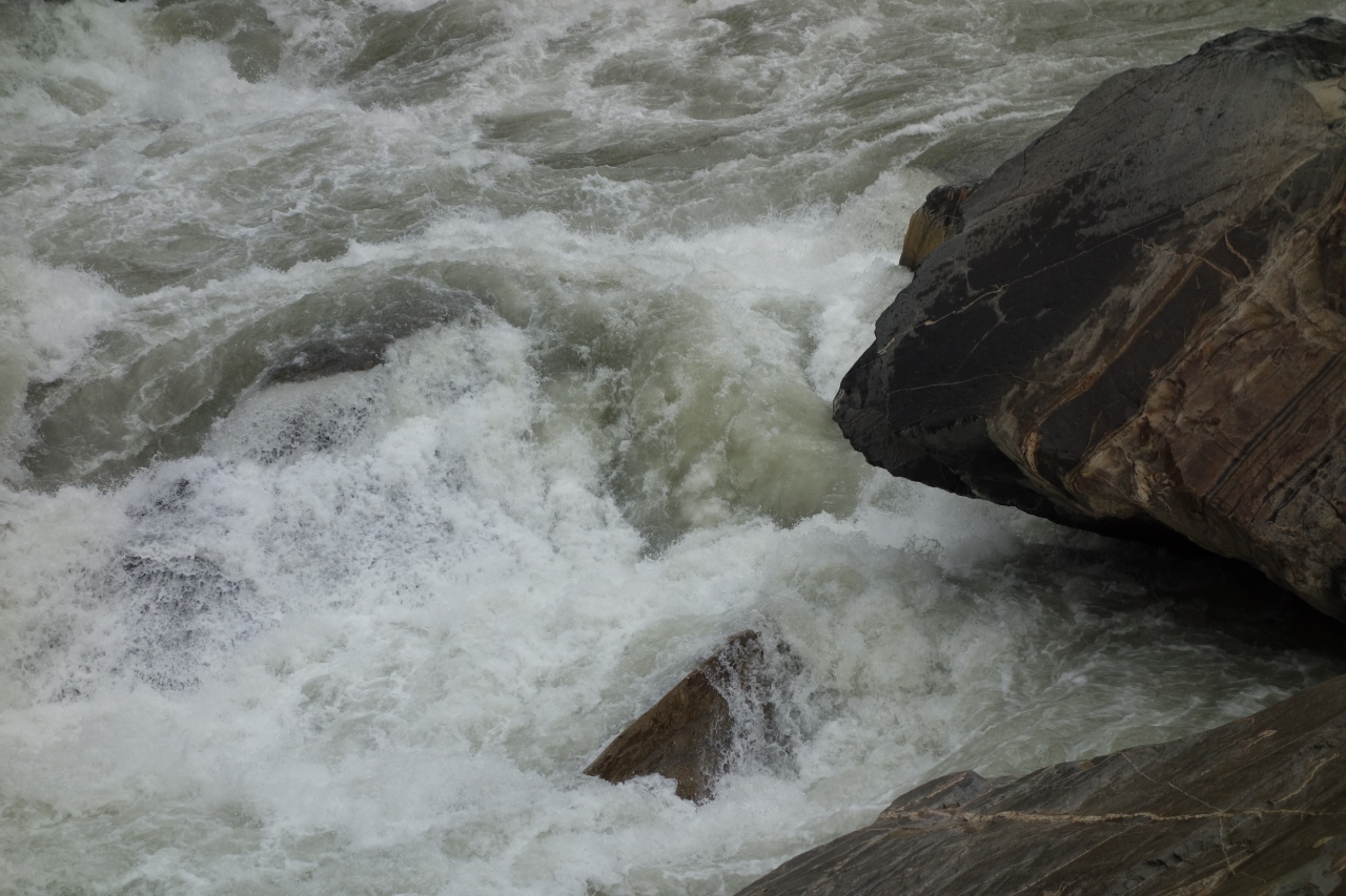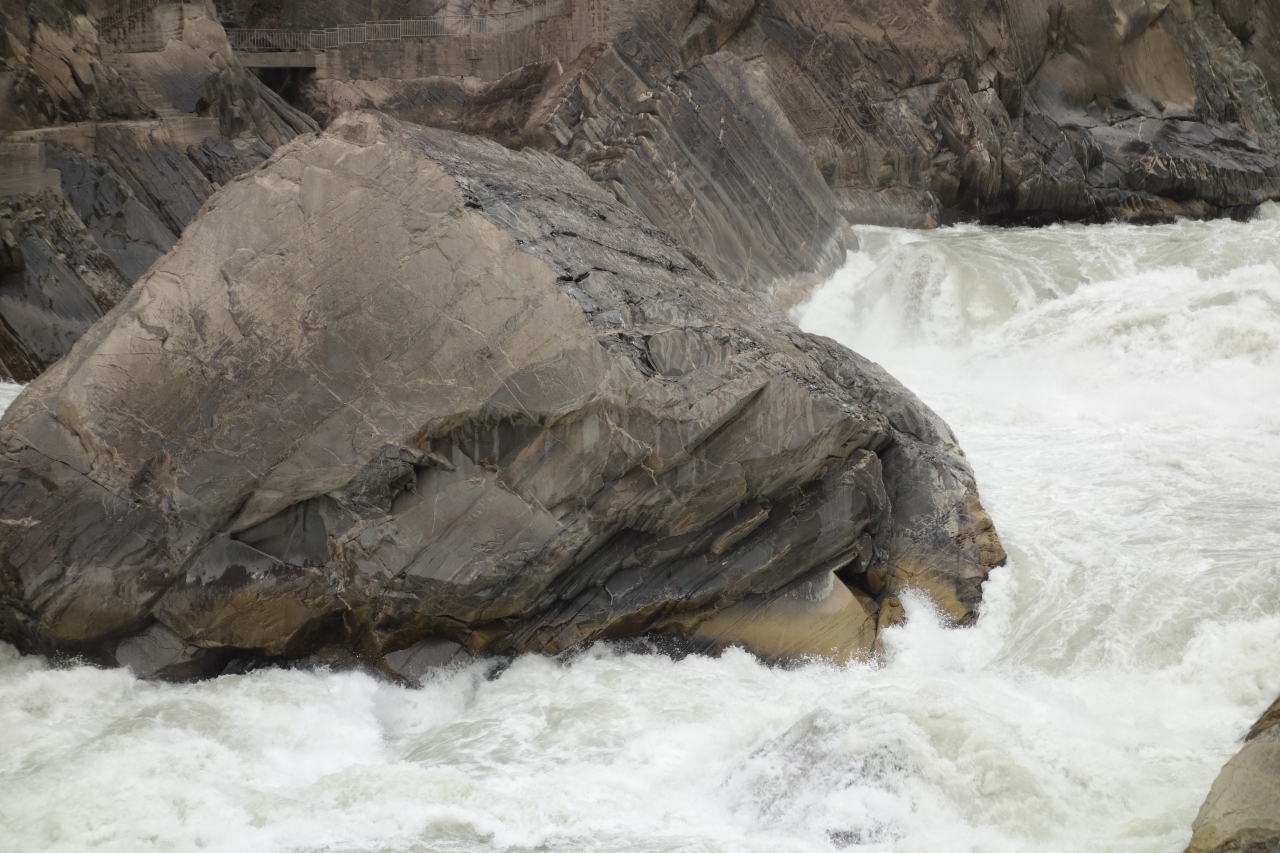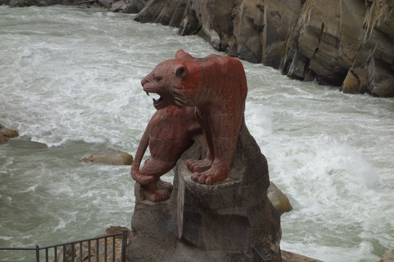 金沙江の川幅が狭くなっている所で虎が真ん中の大きな虎跳石を使ってこの渓谷を飛び越えた伝説があるとか・・