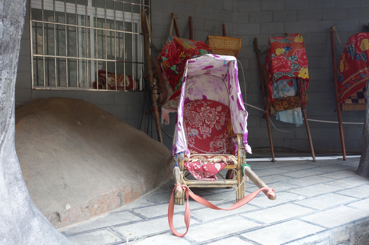 山道を歩くのが大変な人用にかごもありましたが、片道150元・往復200元。階段は大変ですが周りの景色を見ながらゆっくり歩いたほうがいい感じ・・