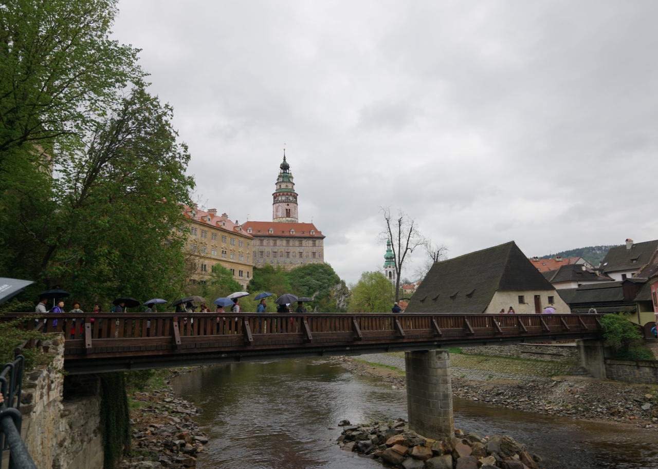 チェスキークルムロフでヴルタヴァ川にかかっている小さな橋。この橋をチェスキークルムロフ城側から渡ると旧市街に入り、2~3分進むと街の中心スヴォルノステイ広場に着きます。ここから見上げるチェスキークルムロフ城が美しく、写真スポットになっています。