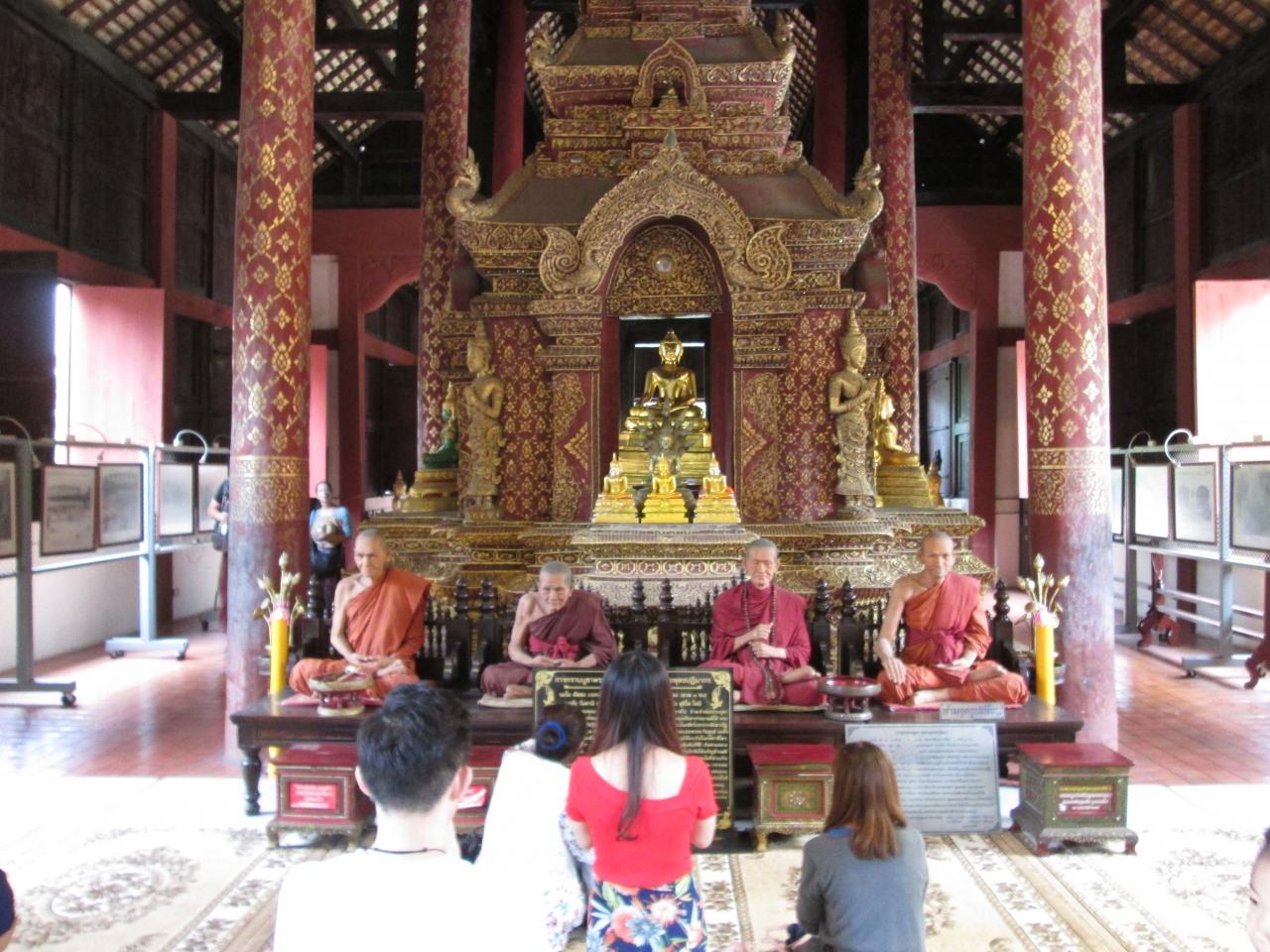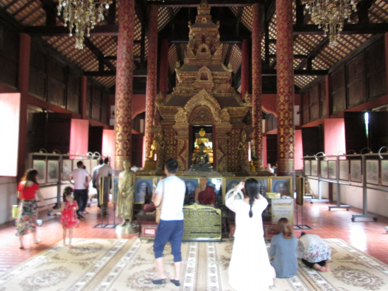 ワット プラシンに参拝するタイ人を見ていると、丁寧にひざまずいてお祈りしています。額を床に付けて祈っている方も見かけます。チェンマイで主要な寺院であるため、老若男女問わず切実な思いがあるのでしょうが、その熱心さにいつも感動します。