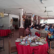 正式な名前は「Lao Panna Restaurant」です。ムアンシンでは高級の部類に入ると思います。西洋人が集まるようなツーリスト用ではなく地元の人が利用するちょっとかしこまったレストランです。そのためお値段もやや高め。野菜炒め、豆腐炒めは2万kip、フライドライス、ヌードル、一品料理は2.5万kip、ラープやトムヤムは3.5万kip、ビアラオ大びん1.2万kip、ハイネケン(330ml缶)1万kipです。1人では利用しにくいかなという感じです。21:00頃までやっています。
