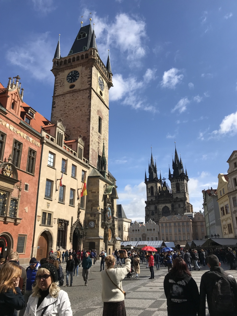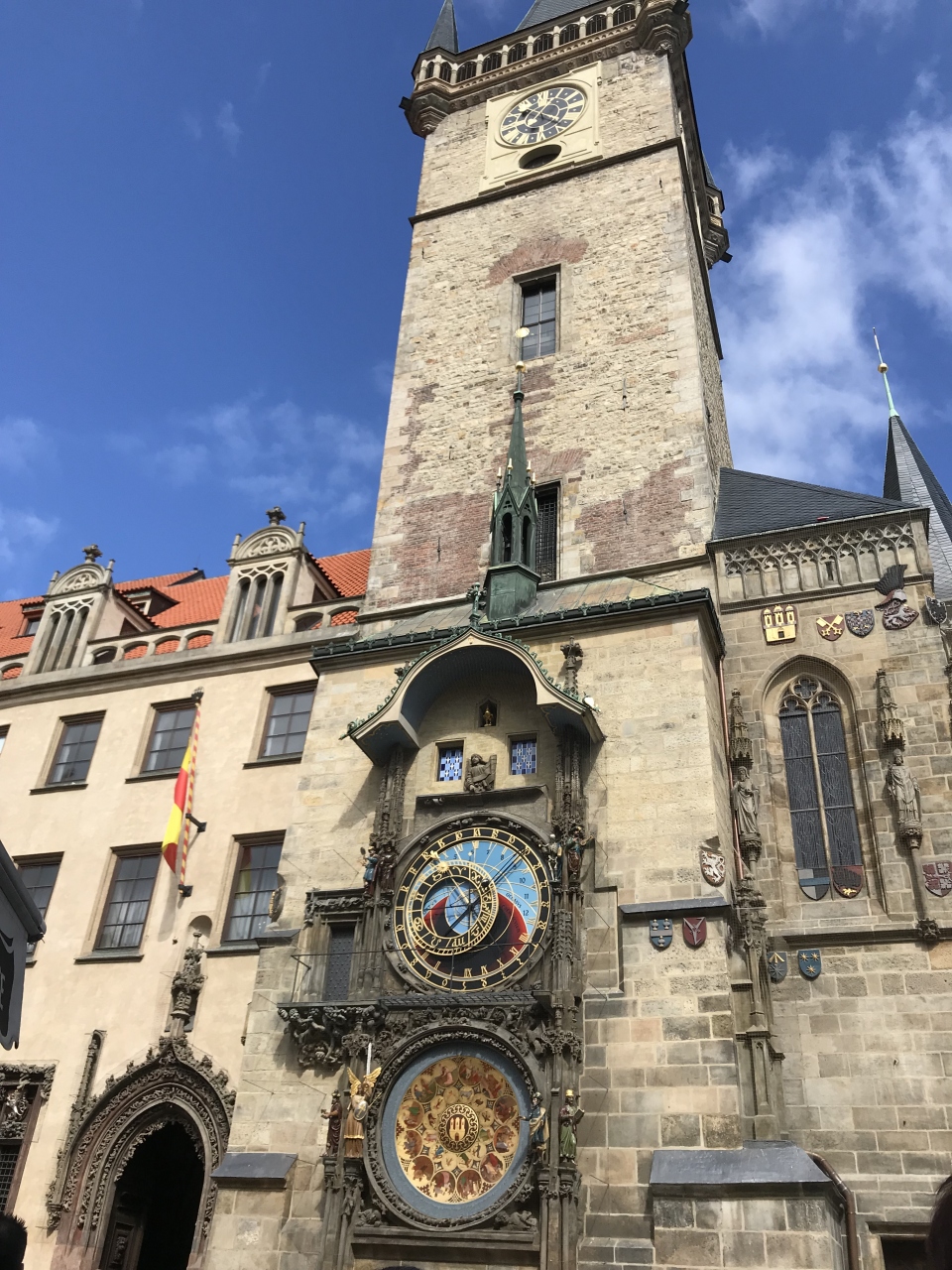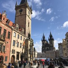 人気スポットの天文時計があるので、いつも多くの人で賑わっていました。旧市庁舎の塔には、上ることができて、眺めが良いのでお勧めです。