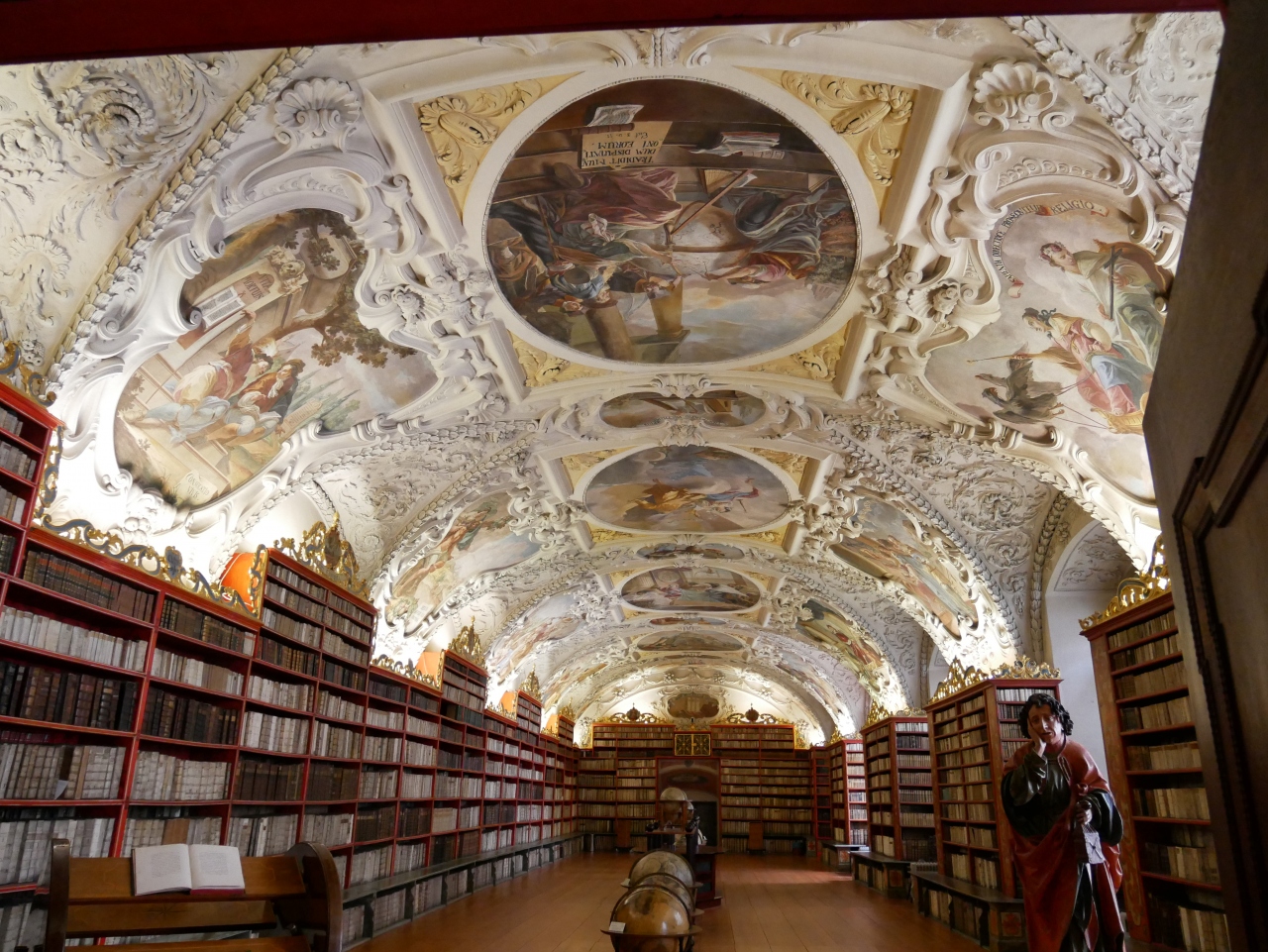 世界一美しい図書館との情報を目にして訪問。1階で入場券と撮影の権利を購入して2階の哲学の間と神学の間を見学しました。いわゆる一般の図書館ではないため実際に部屋に入ることはできませんが、それぞれの部屋の天井画などとても美しく、一見の価値があるものでした。