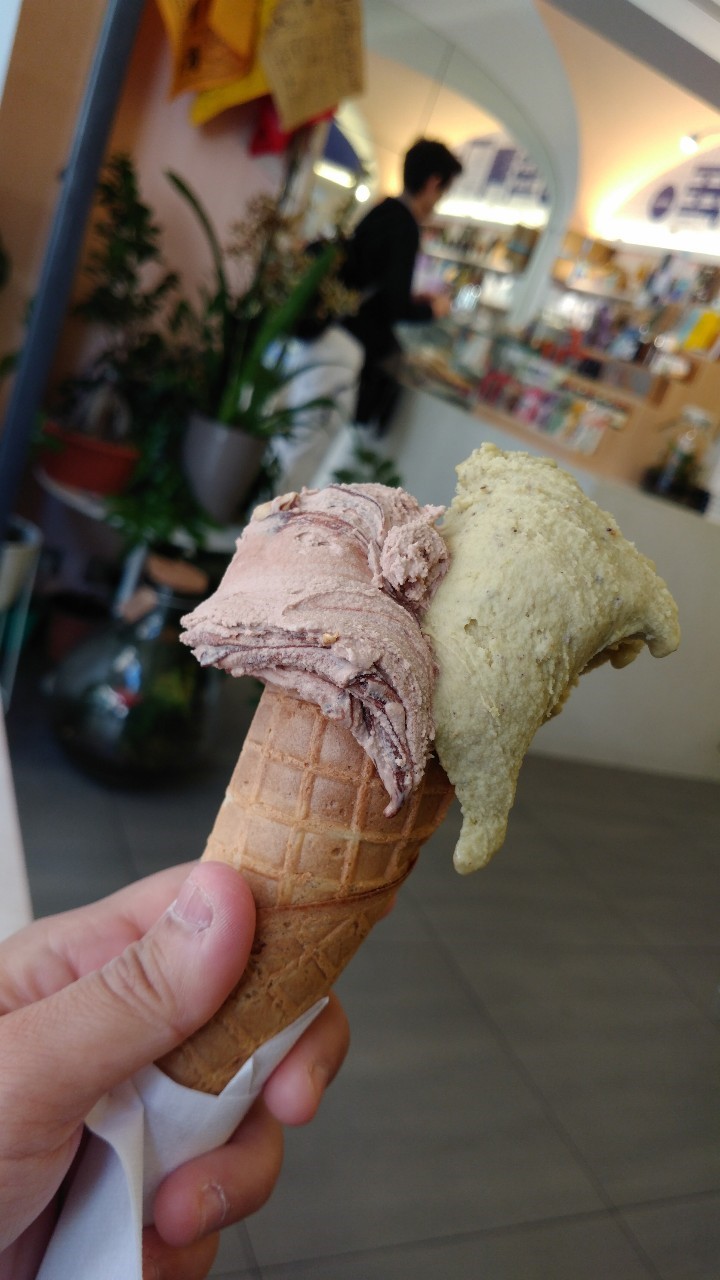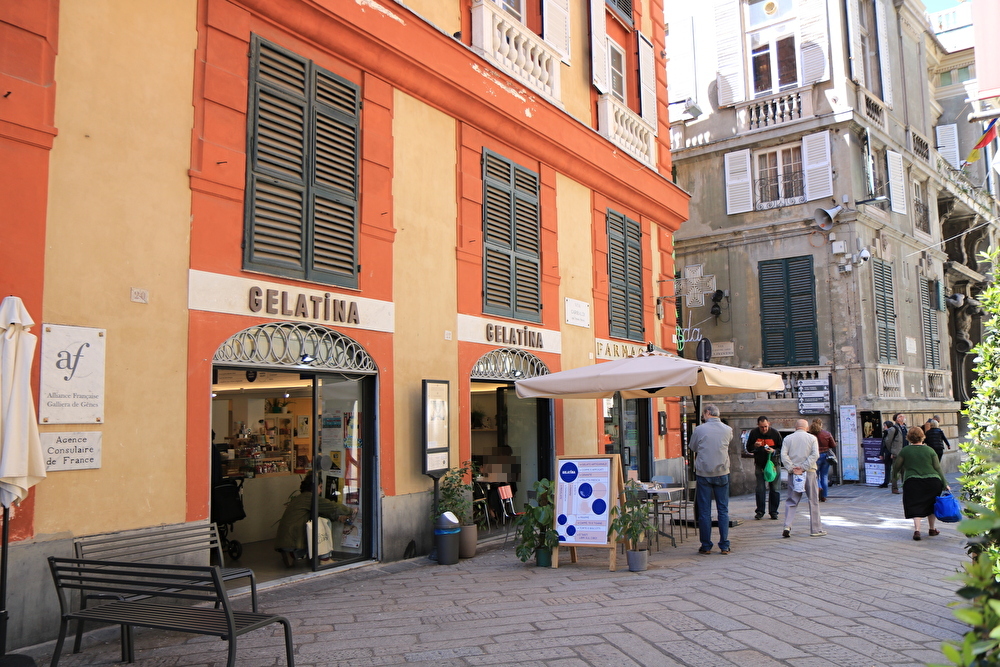 ジェノヴァのガリバルディ通りを散歩中、ひと休みしたジェラート屋さん。