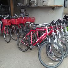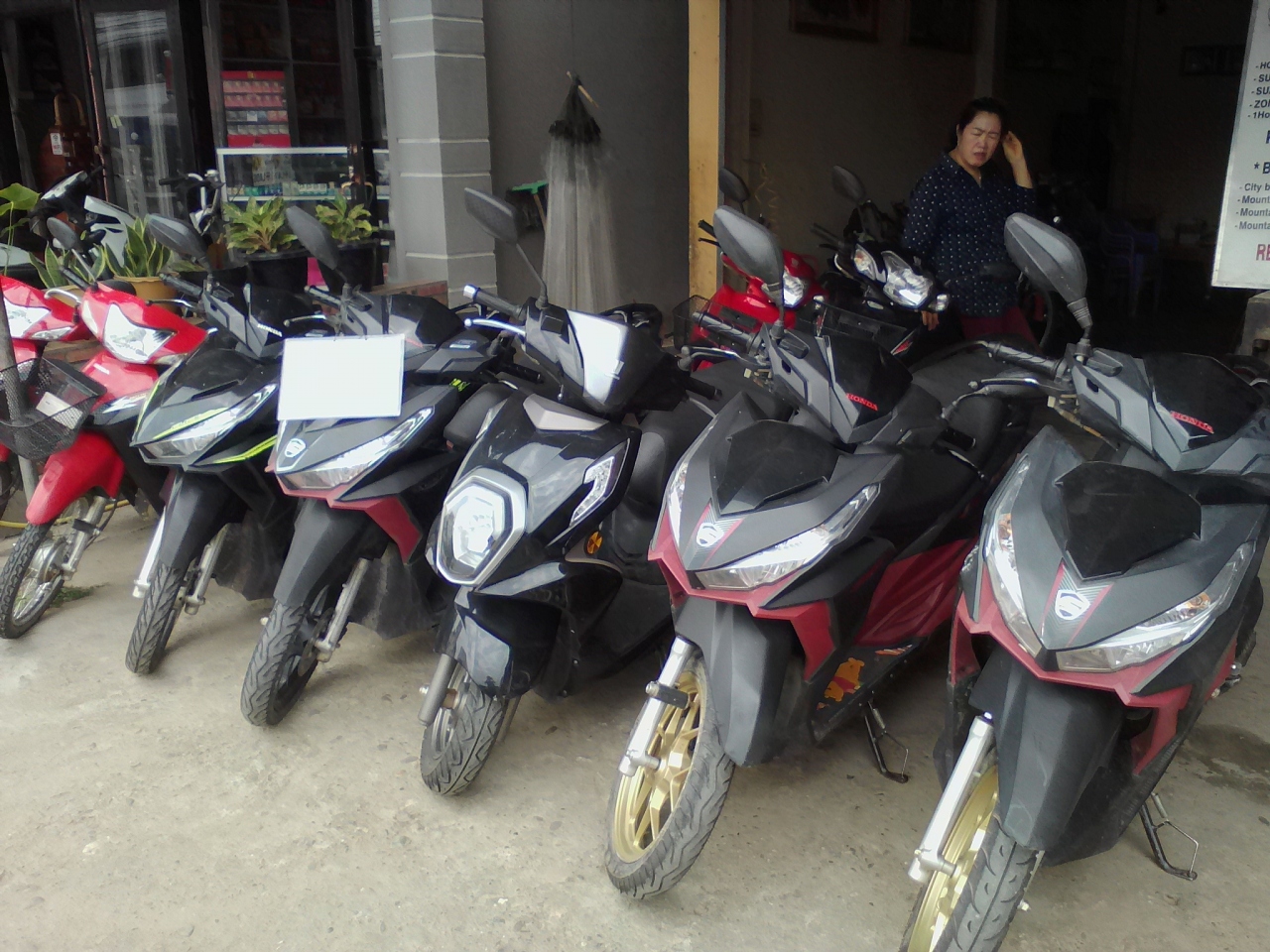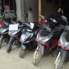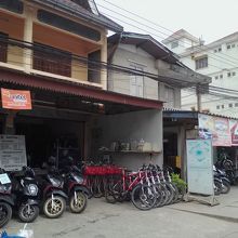 レンタルバイク、自転車の店はメインストリートに集中しています。ナイトマーケットの向かいにある2店が手頃でいいと思います。スクーターなら7万kip〜、自転車ならママチャリ1万kip、マウンテンバイク2万kipです。この2店は並んでいるので料金と質を見極めて借りればいいと思います。バイクは免許証なしでも借りられます。
