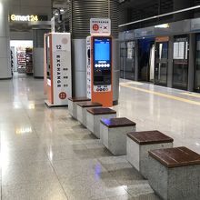 第一ターミナル駅のホームに外貨両替機がありました。他の方のサイトで設置されているホテルがあるのは知っていましたが、空港駅のホームにあるのは知りませんでした。ある程度手持ちのウォンがあったのですが両替しようか迷っていたら電車が到着したので断念しましたが、日本語、中国語、英語(だったと思う)で選べるので言語に困ることはないです。ちなみにこの日の南大門のレートが100円=1060Wくらいで、外貨両替機は1050Wでした。ただ、器械は2種類あり、レートには少しだけ差がありましたので、確認した方がいいと思います。空港で市内とほとんど変わらないレートで両替できるのは時間の短縮にもなりますし、知っておくと便利だと思いました。