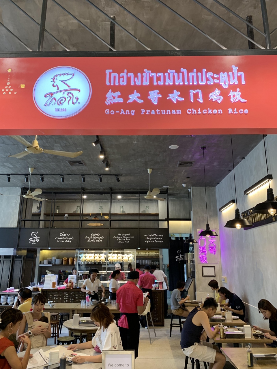 ピンクのカオマンガイで有名なラーン・ガイトーン・プラトゥーナムの新しい店がThe Marketにできましたので、食べ比べに行ってきました。