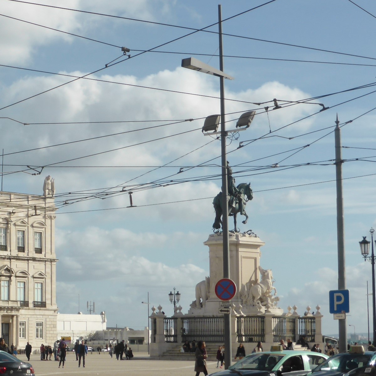 コメルシオ広場は、別名「宮殿広場」ともいい、1755年のリスボン大地震で壊れてしまった宮殿の跡地を利用して作られた広場です。 広場の中心にはポルトガルの王様ドン・ジョゼ1世の銅像がテージョ川に向って建っています。周りはカフェやレストランが軒を並べ観光客や地元の人で賑わっていました。