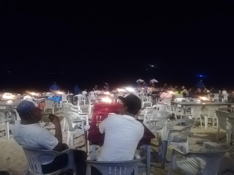 日が落ちるギリギリの時間だったせいか、席はだいぶ埋まっていて、私たちの席も海から一番離れた店に近いテーブル。