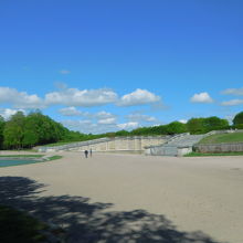 とにかく広い敷地ないに植え込みや噴水で整然とした幾何学模様が描かれています。
