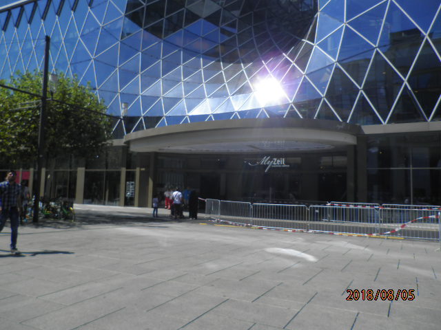 フランクフルトのショッピングの中心となるエリアにあるショッピングモールです。建物は、とても斬新なデザインで印象に残ります。ファッションから食料品までいろいろなお店があり、スーパーマーケットもあるのでとても便利です。