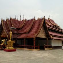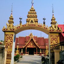 町の中心、旧トライバルミュージアムの裏手にありメインストリート側に入口の門があります。赤と金色の配色が見事な美しいお寺です。昼間はひっそりとしていて人気はなし。本堂の扉も閉まっていて中は見ることかできませんでしたが扉に彫られた装飾はシブくてかっこよかったです。朝行けばもう少し賑やかで本堂内部も見れるかもしれません。