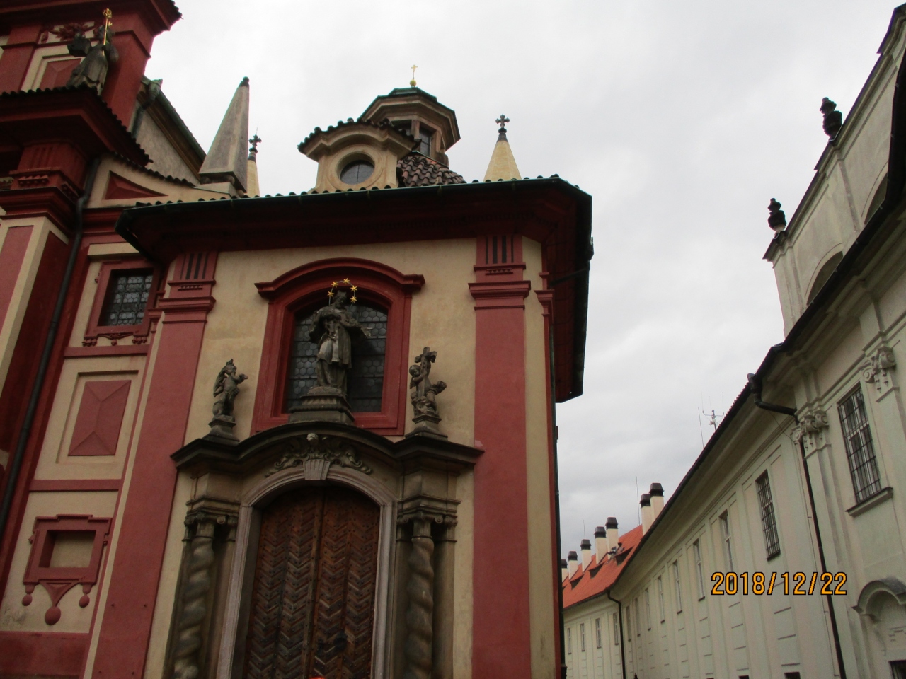 プラハ城内にあるロマネスク様式の教会です。最初は10世紀に建てられ、火災による消失と再建を経て、現在の姿になったといわれています。聖ヴィート大聖堂と比べると、小さくこじんまりとした感じで、赤いレンガ色の外観がとても印象的です。