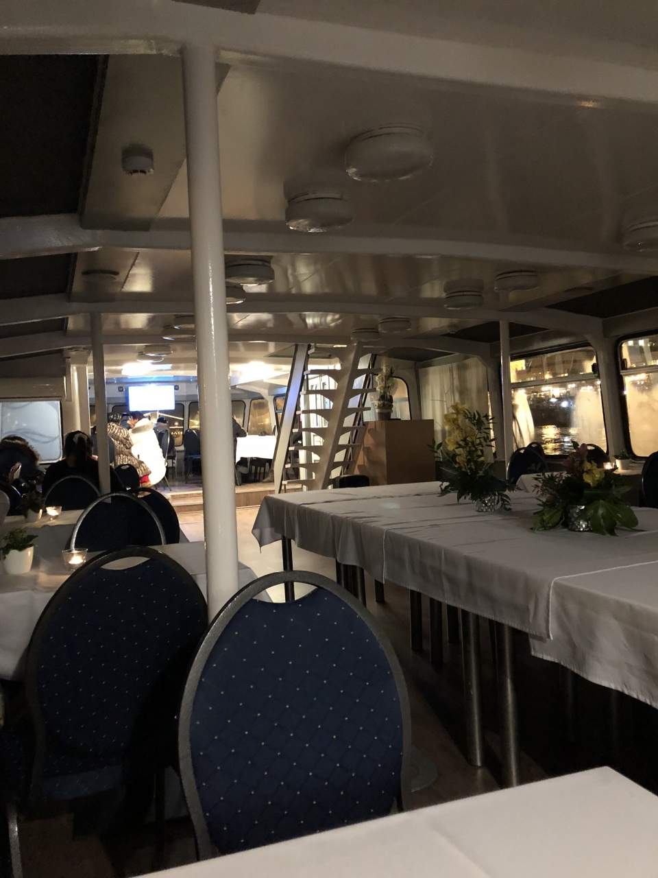 夜景は船の中からでも充分美しく見えますが、写真を撮るにはデッキに出ないといけません。冬場はとても寒いし水しぶきが掛かってくるので厚めの防水のコートがあったほうが良いです。