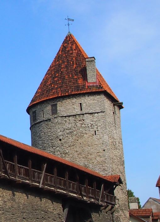 修道女の塔(Eppingi torn)はタリン旧市街の中心にある城壁の一つで、有料ですが螺旋階段を登って城壁の上を歩けます。塔の内部にも入れますが城壁の壁はかなり厚いです。それに比べて赤レンガの部分は木組みの脆い造りでした。