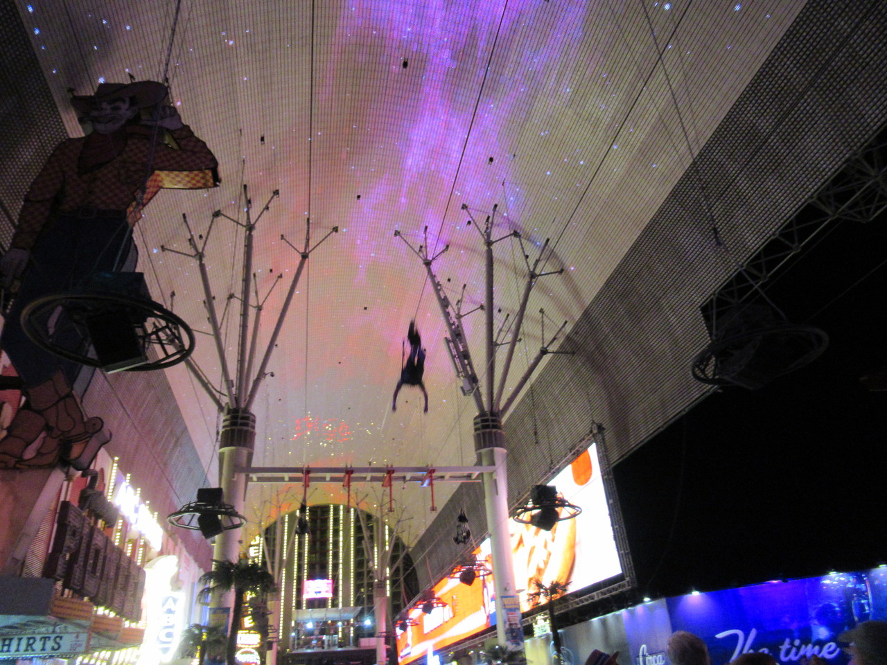 かなり賑やかなアーケード。1時間毎の光と音のショーを見ました。華やかでラスベガスらしいショーです。ショーも楽しいですが、さらに気になるジップライン!スーパーマンのように人が上を飛んできます!やりたかったなあ~。ショーを見るまでABCストアに行くと、けっこう買いたい雑貨やお菓子がいっぱいあって楽しかった!