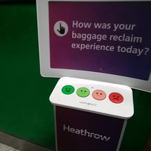 荷物が出てくるのもスピーディでストレスゼロでした。バゲイジクレイムのそばにこんな可愛い機械式アンケートがありました。私は勿論一番左のニコニコマークを押しました。