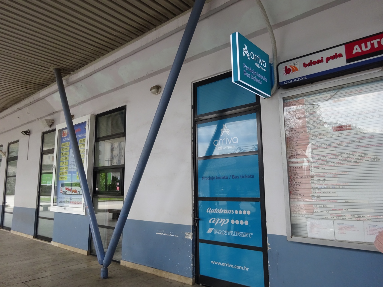 街の中心部からは少し、といっても徒歩5分から10分くらいの距離ですが、離れています。ここの窓口でチケットを買ってポレチュに移動しました。時刻表はネットでも確認できますが、ネットに出ていない時間のものとかもあったので、現地で確認するのがよさそうです。