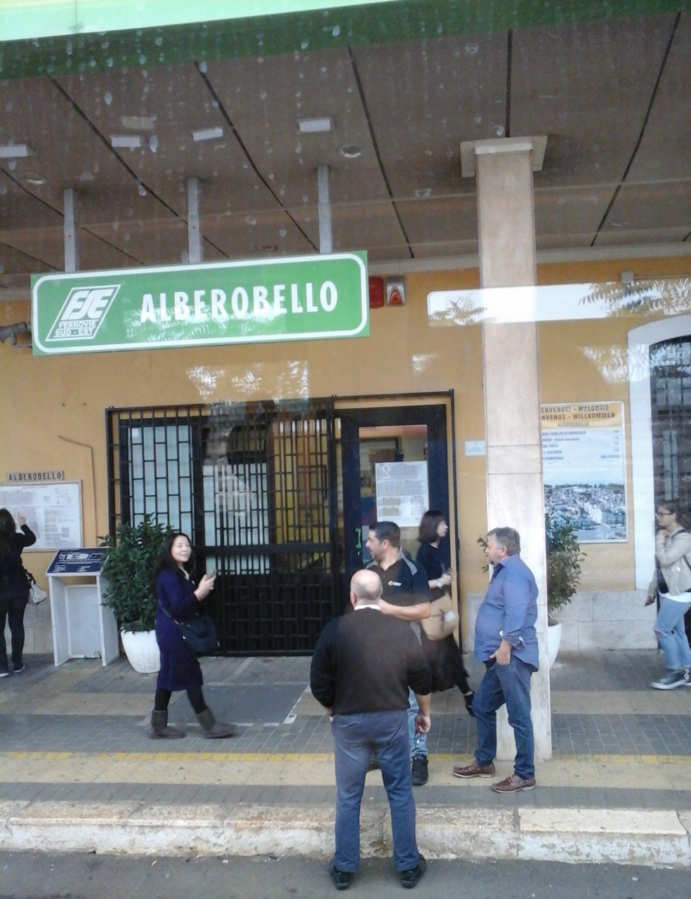 列車の本数が少ないためか、人々がレールの傍に座って、足をレールまで伸ばして列車を待っていました。最初は驚いたが、駅員さんもそこにいたので、安心しました。子供は早速真似をして一緒に並んで座りました。その上、列車が遅れてきました。