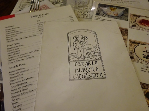 バーカロに行きたいので入ったのですが、バーカロ的なところは入口を入ってすぐのおかずが並んでいるショーケースのところだけで、全体的には地元密着型の老舗レストランといったところでしょうか。メニューには日本語も併記されています。