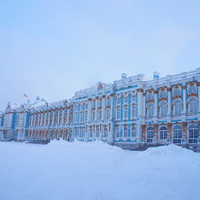 エカテリーナ宮殿の見学を訪れた際に周辺の庭園も散策しました。冬に訪れたのでとても寒く、また園内はあたり一面真っ白でした。庭園内にもあちこちにちょっとした建物が点在していたりしました。クリスマスツリーがあったりサンタクロースの恰好をしている人がいたりしました。