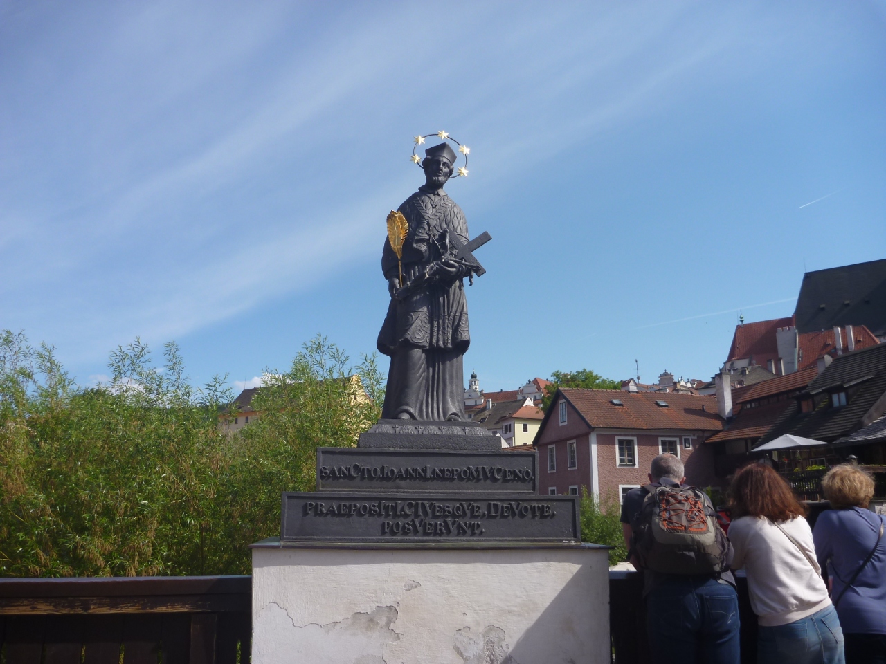ここにも、聖ヤン・ネポムツキ―の像が建っていました。川に身を投げた聖人なので、必ず川に架かる橋に建っているのですね。