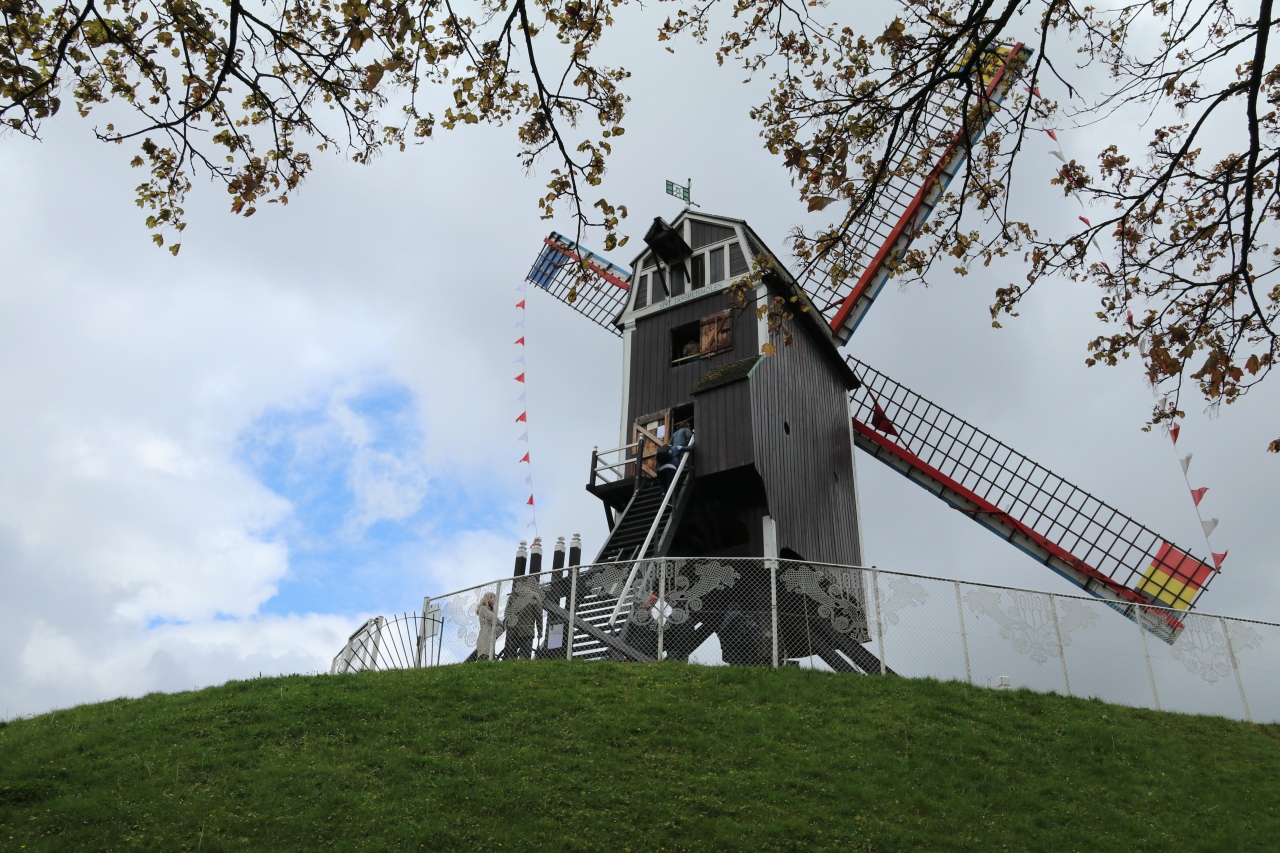 風車と聞くとオランダを思い浮かべることが多いですが、もともと一つの国であった隣国のベルギーにももちろんありました。ブルージュにも郊外の運河沿いに数基の風車が残っています。