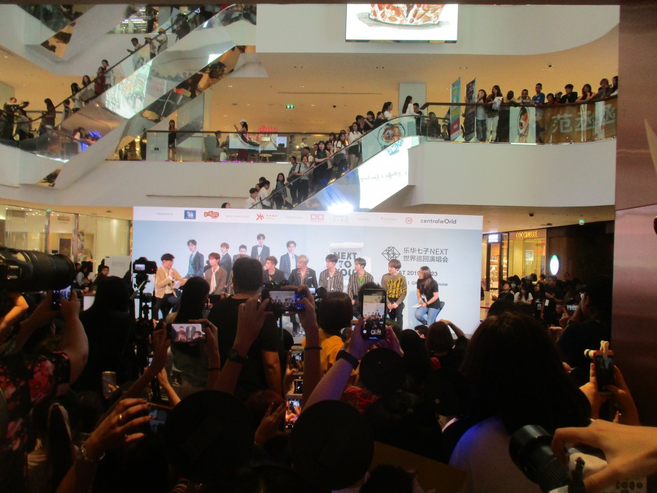 3月の週末にセントラル ワールドでショッピングをしていると黄色い声が上がっているのを聞いて近くに来ると、中国の人気男性アイドルグループ 楽華七子NEXTがイベントを行っているのを目撃しました。2月はBNK48でしたが、ここに来るとタレントを見る機会が多いですね。