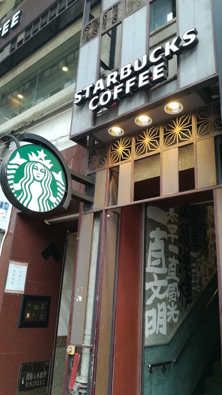 宿泊していたコーディス香港からは、地図で見ると距離がありそうで実際はあっという間に到着。朝8時過ぎに行きましたが全く混んでおらず、お目当ての限定タンブラーをサクッと購入。入口は狭くて見落とすかもしれません。階段や壁がザ・香港という感じでテンション上がります。