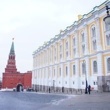 ボロビツカヤ塔はクレムリンの端のほうにある入口で、チケット売り場からは少し歩きました。武器庫やダイヤモンド庫に近い入口です。帰りはトロイツカヤ塔から出てきましたが、こちらの塔はボロビツカヤ塔よりも非常に混雑していました。