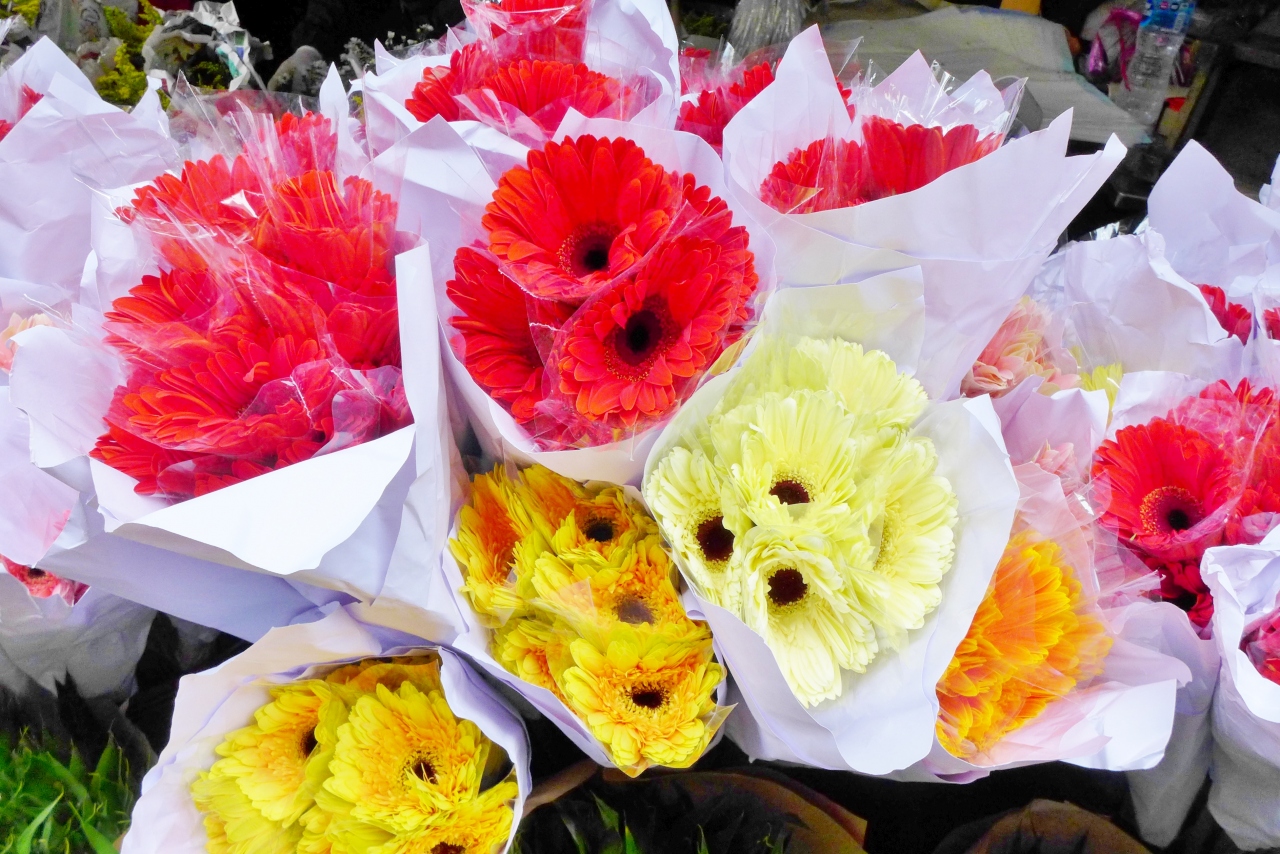 たくさんのお店には切り花や花ビラだけ、あるいはお供え用のお花などが所狭しと並んでいて見ているだけでも十分に楽しめました。値段は明らかに安いですが日本へ買って帰れないのが残念でした。