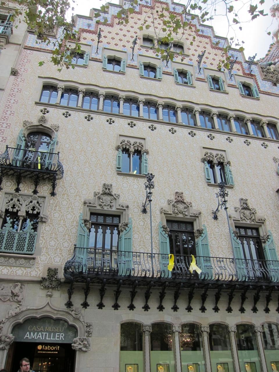 カさパトリチョの隣にある、美しいサファードを持ち、Josep Pulg氏作の中世ロマネスク様式の建物で、浅堀りのレリーフや、切り妻屋根が特徴。下にカフェが入っており、入って見ましたが、あいにく満席。ステンドグラスが美しい店内でした。