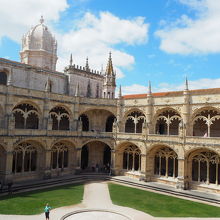 回廊の装飾はとても凝っています。当時のポルトガルの国力の凄さを実感しました。是非1周してじっくり見学してください。階段を登って2階に行く事も出来ます。2階からは教会を見ることが出来ます。回廊の装飾は2階より1階の方が立派に感じました。