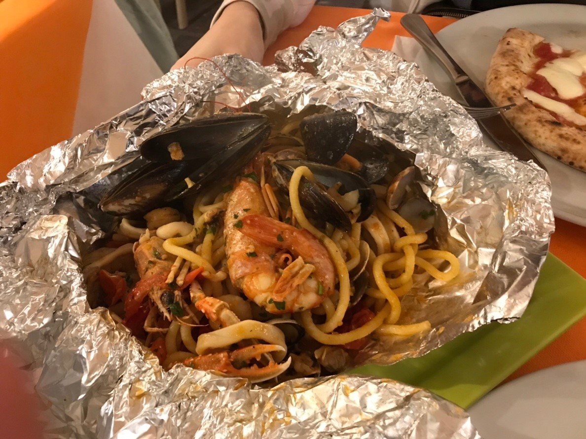 たまたま通りかかって入ったお店でしたが気に入って次の日も2日連続で行きました。英語が話せない私たちにも一生懸命伝えようと対応してくださったスタッフの方々、とってもフレンドリーで一緒に写真も撮りました。お料理はピザやパスタ、サラダ、パエリア、スープなど2日間で色んなシーフードメニューを頂きました。個人的には大きなマルゲリータ(写真が半分のサイズ)が美味しくておススメでした。主人はシーフードスペシャル?的な1番お高いパスタメニュー(写真参照)がお気に入りの様でしたが、私はパスタがうどんの様な太い感じが好みではなかったです。好みによるかと思います。ビールやワインも飲んで1人3000円しない位でお腹いっぱいになれた気がします。このお店だけに限らずこの国のメニューはどれもボリューミー。