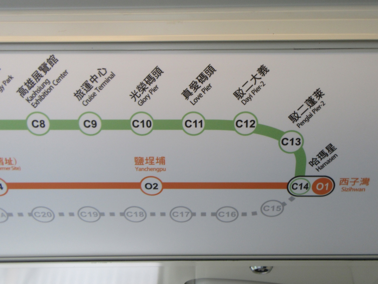 今回未乗車区間の高雄展覽館站から哈瑪星站まで乗車。