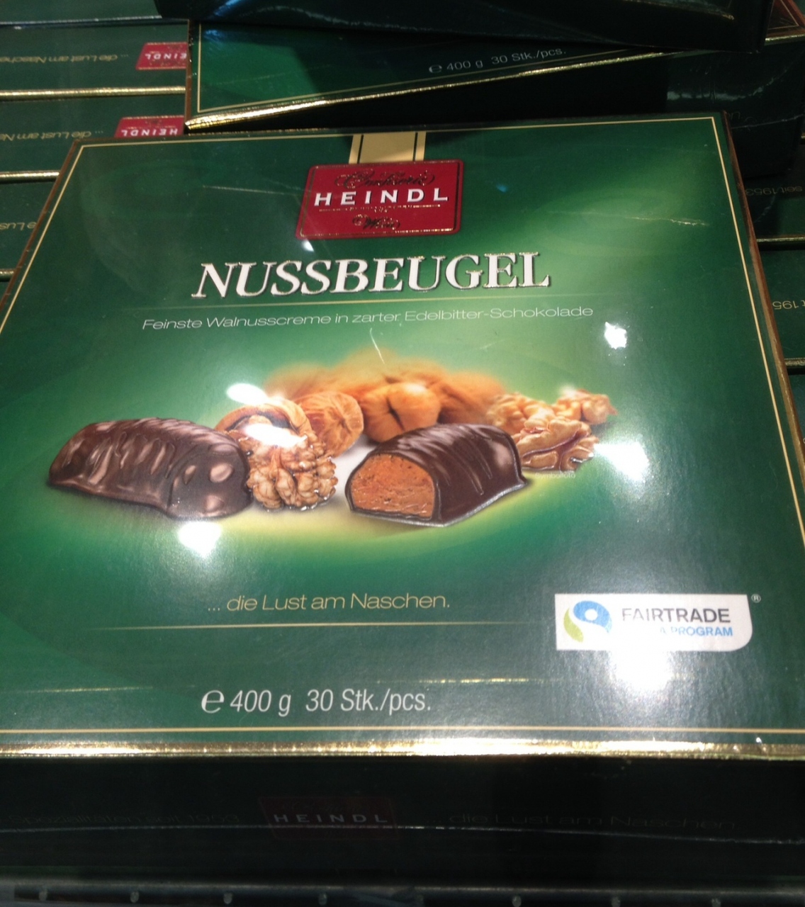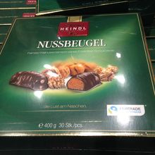 お土産用のチョコレートを選ぶのによいお店で、モーツァルトやエリザベートや季節のデザイン缶など種類が豊富。カップやぬいぐるみとのセットもあり。