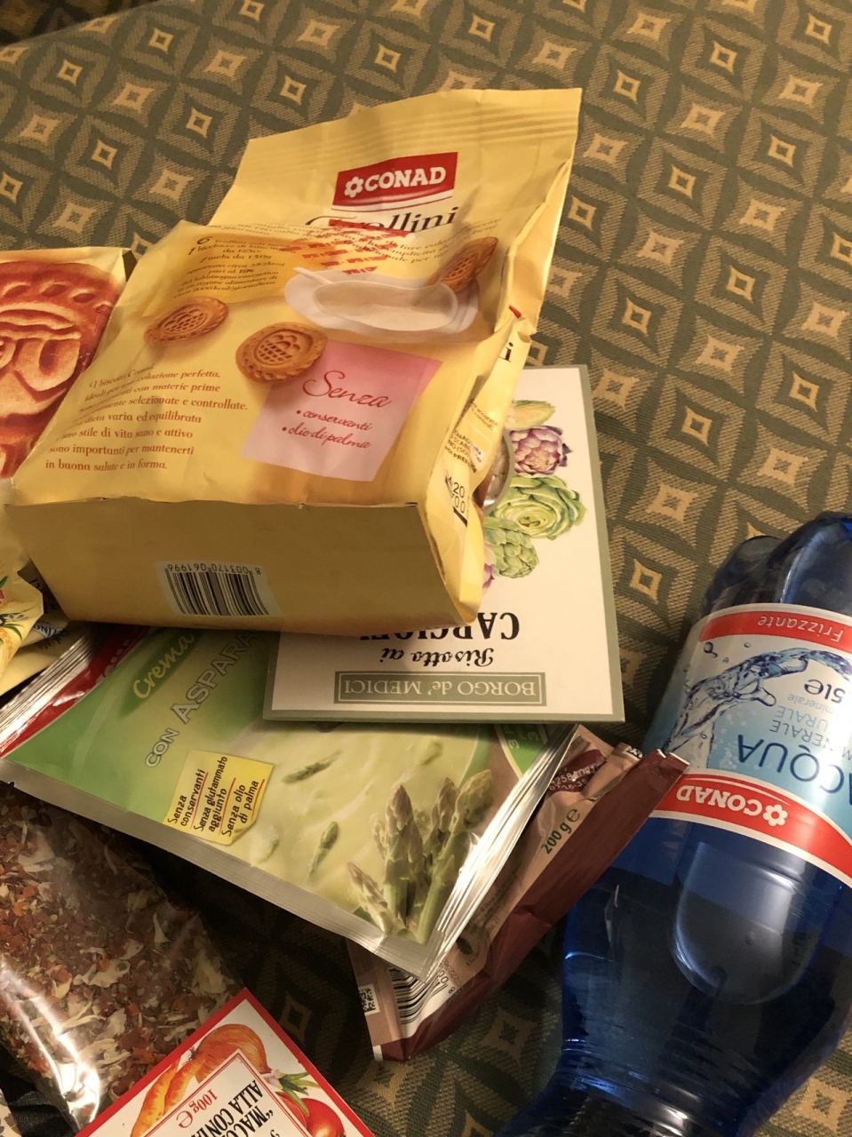 テルミ二駅地下の端のほうにある、スーパーです。出かけた帰りの買い物に便利です。昨年は有人レジのみでしたが、なんと今年行くと、セルフレジになってました。イタリア語のみ。画面上の絵を頼りに悪戦苦闘でした。係員さんがいるので呼ぶと助けてくれます。