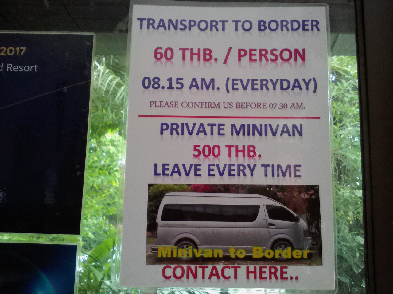 また、Namkhong G.H & Resortではソウテウではありませんが国境へのミニバスサービスがあります。毎朝8:15出発、60B。宿泊客以外でも利用できます。