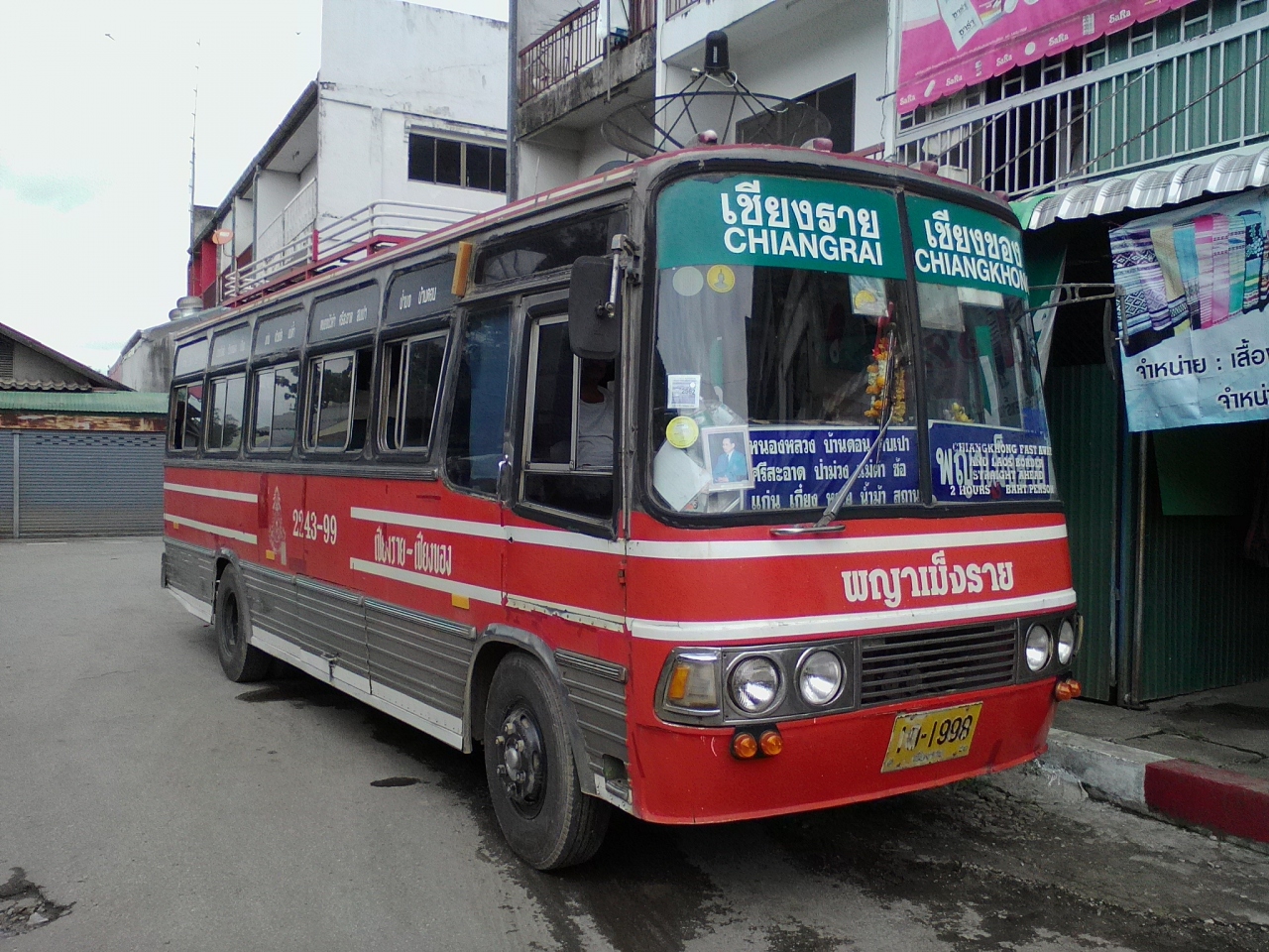 チェンコンからチェンライ、チェンマイ、バンコク行きのバス乗り場は市街南部にある市場周辺に集まっています。場所は写真の地図を参照して下さい。