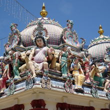 極彩色の、いろいろな神様が飾られた屋根を見たら、つい中へと引き込まれました。