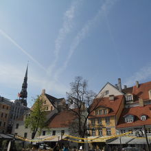 二つの大小の「ギルドホール」や有名な「猫の家」が面しており、オープンテラスの飲食店なども多い広場です。滞在中、昼間に雑貨系の露店なども出店されていました。