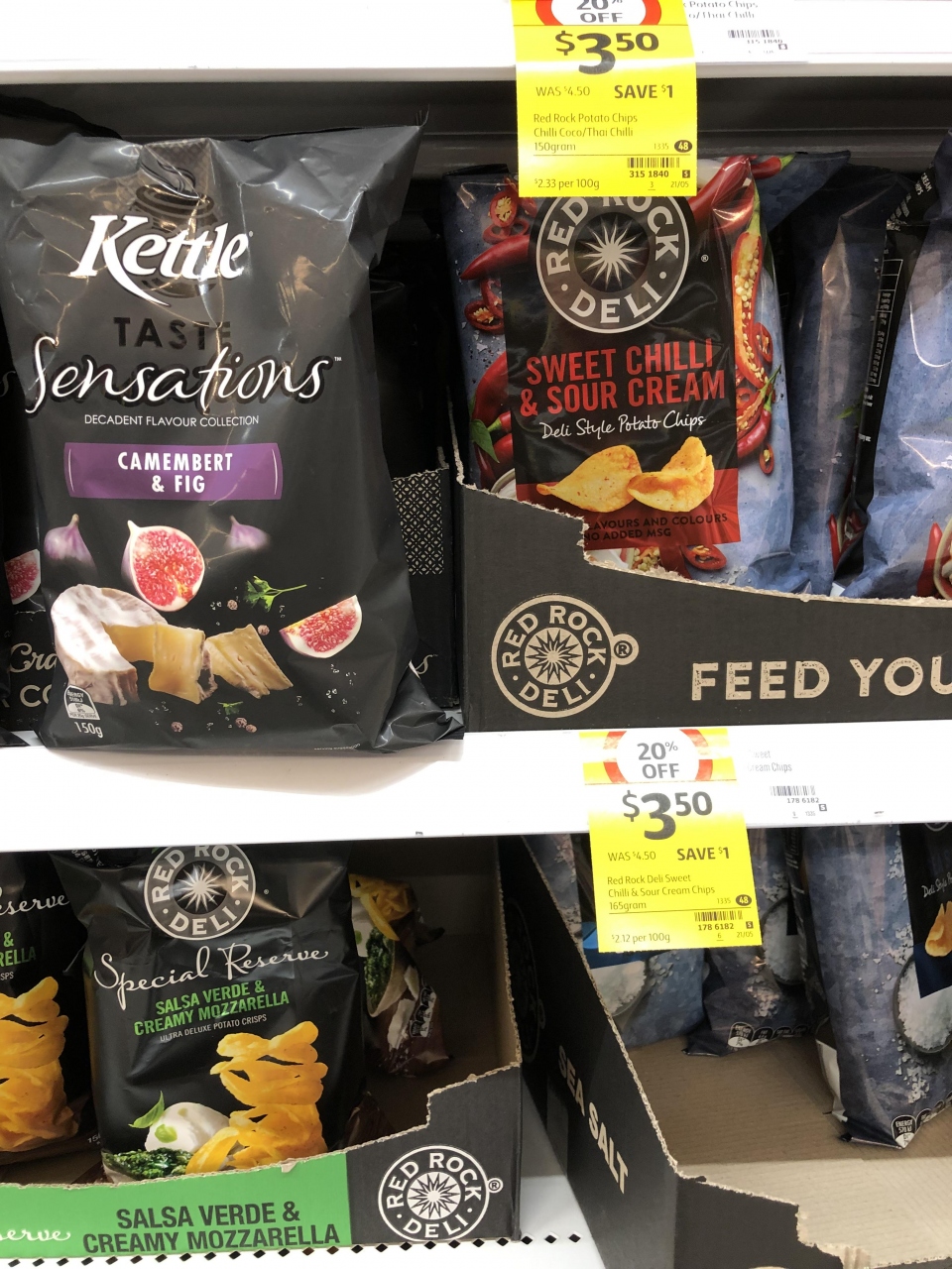 豪の美味しいポテトを使ったポテチの種類の多いこと!それから濃厚なミルクを使ったチーズや色々なペースト。スイーツ好きなら本場のティムタムにレミントン。ガーリックトーストを作るためのパウダー調味料も売っています。